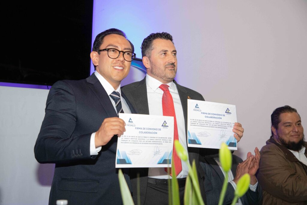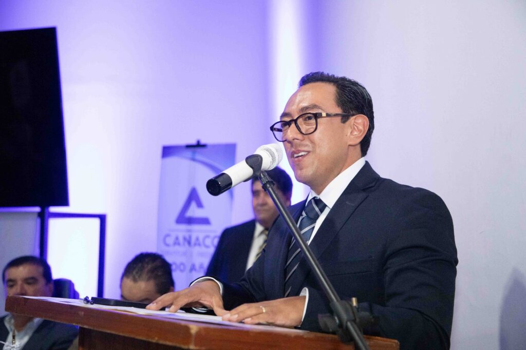 Durante su intervención, Arturo Azúa destacó la firma de un convenio de colaboración con Canaco Zacatecas, para impulsar cadenas productivas y proyectos de productividad conjunta, con miras a fortalecer el comercio entre los municipios y el estado.