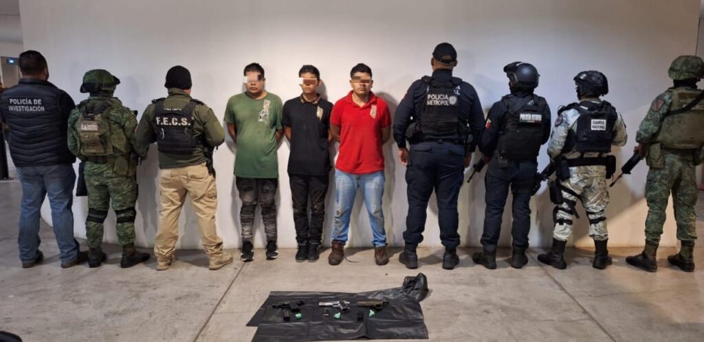 En una segunda acción en la colonia Plutarco Elías Calles, las Fuerzas de Seguridad lograron la detención de Armando N., de 18 años de edad, originario de Guerrero; Joaquín N., de 20 años, de Jalisco y Alexis Michel N., de 27 años, oriundo de Nayarit.