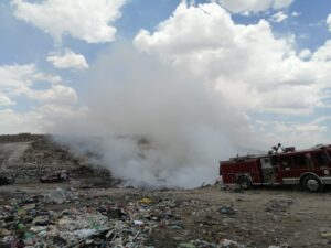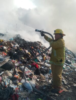 Se recibió el reporte a las 7 de la mañana sobre un incendio de 50 por 30 metros en el basurero, por lo que desde el primer momento se han estado haciendo labores para sofocarlo, así lo dio a conocer Víctor René García Magallanes, titular de Protección Civil y Bomberos.